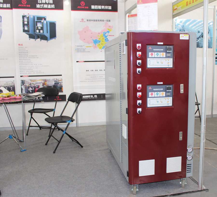 據介紹,鼎正鑫鎂合金熔爐采用特種復合鋼板制造的坩堝,不污染鎂液,內有防腐結構,使用壽命長;不銹鋼外殼及面板,耐腐蝕、耐高溫;定量泵瞬時流量設計,維護時間30天以上;預熱機采用夾持式機構,使液面控制穩定,給料精準;并采用防堵鎂合金彎頭設計等多項專利。 蘇州奧德攜壓鑄專用模溫機亮相寧波展 奧德作為行業技術領先的工業溫控設備整體方案提供商,在模溫機領域擁有先進的先進技術及工藝。通過多年的研發生產,已成功開發出模溫機、油溫機、冷水機等系列產品。本屆展會上,奧德攜一款新穎的壓鑄專用油溫機亮相。 壓鑄專用油溫機主要應用于壓鑄過程的油路溫度控制。奧德壓鑄油溫機具有回油溫度顯示,開機自動排氣,油泵反抽回油,加熱功率切換,隔離式電器控制箱,延長電器使用年限;即時冷卻回油關機,熱油BY-PASS泄壓回路等功能。