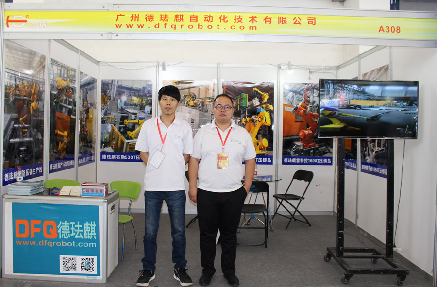 瑞弘新材總經理李其慶先生表示:“我們選用抗氧化性能優良的磷酸鋁石墨材料,和對熔體無害的抗氧化涂層及抗氧化保護套,引進美國抗氧化技術并加以改進,專門開發制成復合型長壽命石墨轉子等制品,降低客戶應用旋轉噴嘴除氣除雜設備的后期維護成本。”據介紹,瑞弘新材主要產品有SPD石墨片、石墨轉子、石墨擋板、石墨環、石墨坩堝、石墨棒、石墨通氣管、石墨顆粒、石墨板等。 德法麒展示一站式壓鑄自動化解決方案 廣州德琺麒自動化技術有限公司作為行業技術領先的壓鑄自動化技術及周邊設備解決方案提供商,專業從事鋁鎂合金壓鑄機器人自動化開發設計制造,同時提供各種壓鑄工業服務。每次展會都一貫為壓鑄行業帶來最新壓鑄自動化及壓鑄島產品解決方案。 廣州德琺麒經過多年的研發生產,業務已包括工業自動化裝備,領域包括機器人噴涂;機器人取件;機器人切邊;機器人打磨裝置、機器人去毛刺裝置、機器人搬運裝置、自動噴霧裝置;自動取出機器手;切斷機;輸送帶等。