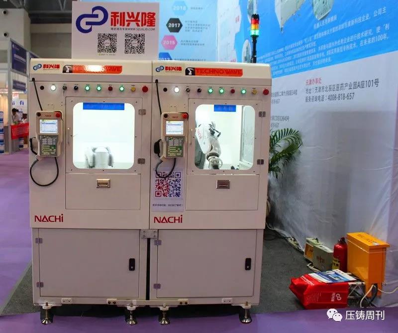 青島中冶坩堝產(chǎn)品 本屆展會(huì)上,青島中冶攜兩款型號(hào)分別為CN250、CN500的石墨坩堝亮相,向西南地區(qū)用戶展示其金屬熔煉產(chǎn)品解決方案以及公司生產(chǎn)能力。據(jù)了解,青島中冶坩堝產(chǎn)品具有傳導(dǎo)熱快、使用壽命長(zhǎng)等優(yōu)點(diǎn),而其在耐火材料領(lǐng)域深耕多年,使得其掌握了成熟材料技術(shù)、生產(chǎn)工藝,以及極強(qiáng)的提供解決方案的能力。 深圳利興隆:去毛刺清洗多功能系統(tǒng)收追捧 為更好的滿足實(shí)現(xiàn)廣大客戶對(duì)低成本,高效率的自動(dòng)化生產(chǎn)的迫切需求,經(jīng)過(guò)12個(gè)月的努力,深圳市利興隆機(jī)電設(shè)備有限公司與日本太威機(jī)械共同研發(fā)出了一套集成了機(jī)器人去毛刺,機(jī)器人高壓清洗的全自動(dòng)化去毛刺及清洗系統(tǒng)。在本屆立嘉壓鑄展商,深圳利興隆攜該全新去毛刺機(jī)清洗系統(tǒng)亮相,受到現(xiàn)場(chǎng)觀眾的追捧。