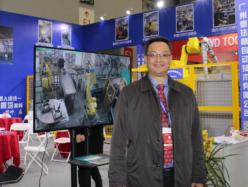德琺麒總經理蒲昌月先生 另外,廣州德琺麒公司開發的DFQ-2500-S 雙聯智能壓鑄島,還榮獲2019中國國際鑄造博覽會“全國鑄造裝備創新獎”,成為獲此殊榮的僅有的兩家壓鑄裝備提供商之一。據了解,DFQ-2500-S系廣州德琺麒為廣東鴻特科技股份有限公司開發的雙聯智能壓鑄島,為一套由2臺大型壓鑄機+7套機器人為核心設備組成的智能自動化壓鑄單元。此乃壓鑄行業數一數二的雙聯壓鑄島項目。其技術水平和參數指標,均達到以上技術攻關項目的要求。