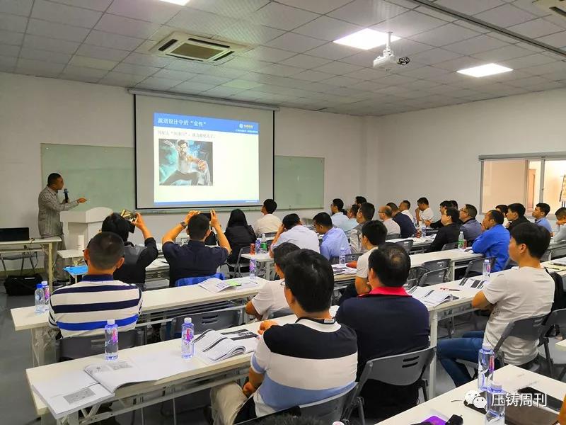 新臺通商總經理邱坤彰先生發言 隨后,研習會正式開始,第一天的報告主題包括:壓鑄產業概述,鋅壓鑄件流紋分析和切線型流道設計,超高速/超低速/高精度鋁壓鑄技術與特殊功能運用,工業4.0壓鑄數據管理系統中舊機與新機集中數據管理案例,高品質省能源鋁湯溶解技術,高品質熔湯處理技術,鋁壓鑄模具設計與不良對策,高品質壓鑄進階技術與設備:點冷系統/局部擠壓鑄造/PF吹氧真空鑄造等。