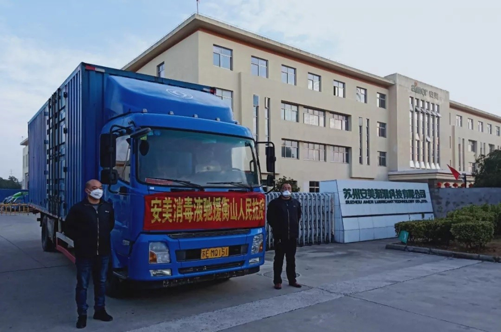由安美股份捐贈的9噸消毒液交付給衡山衛健局 2月10號,一輛裝滿消毒液的大貨車從安美股份昆山工廠開出,經過20多個小時1100多公里的長途跋涉,于2月11號早上抵達湖南衡山,這批361桶9噸多消毒液由安美捐贈給衡山縣衛健局,支援湖南衡山人民的肺炎疫情防控工作。 安美股份始創于1995年,致力于潤滑抗磨領域的研究和發展,主要產品包括工業潤滑油、車用機油、金屬加工液、清洗劑、表面處理劑等,為手機、工程機械、電力、冶金、鋼鐵、模具、機床、壓鑄、注塑、重工等60個行業提供優質、穩定的化學產品。公司總部位于東莞,在中國和越南七大生產基地、三所研發中心。 |