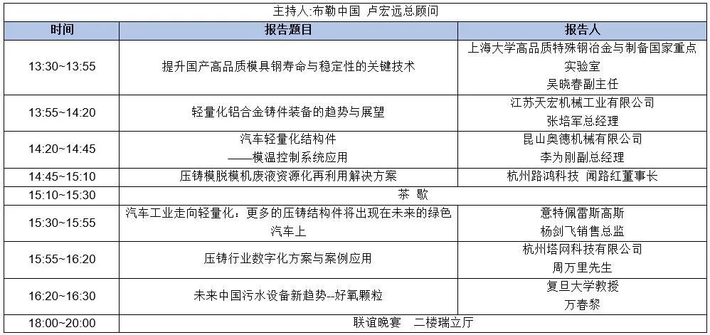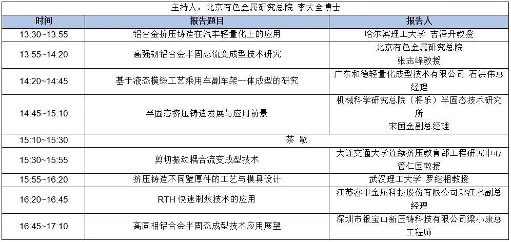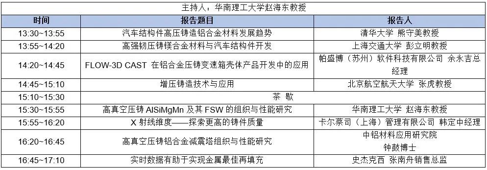 8月17日 下午 會場一:壓鑄結(jié)構(gòu)件與壓鑄合金的應(yīng)用 二樓瑞立1廳