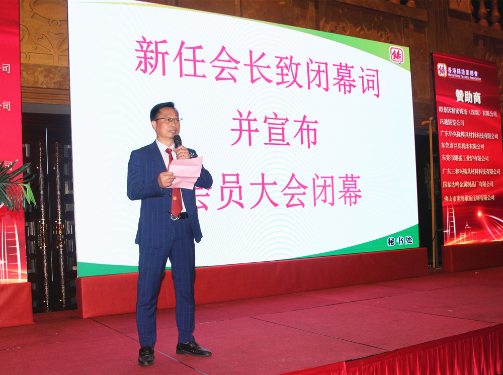 順景園精密鑄造(深圳)有限公司蔡子芳先生連任香港鑄造業(yè)總會新一屆會長。蔡子芳會長現(xiàn)場發(fā)表了熱情洋溢的當(dāng)選感言。隨后,會員代表大會宣告結(jié)束,主辦方安排了豐盛的慶祝晚宴。