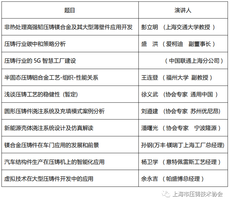 承辦單位:上海市壓鑄技術(shù)協(xié)會(huì)