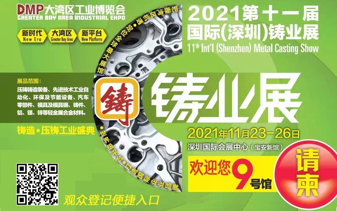2021第11屆國際(深圳)鑄業(yè)展、DMP大灣區(qū)工業(yè)博覽會將于11月23-26日在深圳國際會展中心(寶安新館)舉行,盡請持續(xù)鎖定主辦方發(fā)布的展會及展商精彩預(yù)告!參展/參觀詳詢:陳女士 18022853928