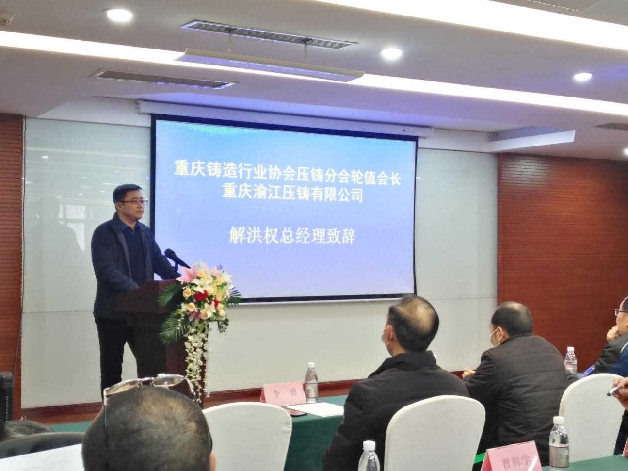 重慶渝江壓鑄有限公司總經理解洪權致辭 首先,重慶渝江壓鑄有限公司總經理解洪權在致辭中說,眾所周知,今年壓鑄企業經歷了疫情和原材料漲價雙重影響,非常不容易。而隨著新能源汽車和汽車輕量化的發展趨勢,以及特斯拉推動了大型結構件的應用,為壓鑄企業帶來了無限商機。至此,希望在到來新的一年里,大家在鑄協的協調和支持下,抓住這一輪壓鑄發展的機遇,在提高壓鑄產品品質的同時,進一步取得更大的發展。