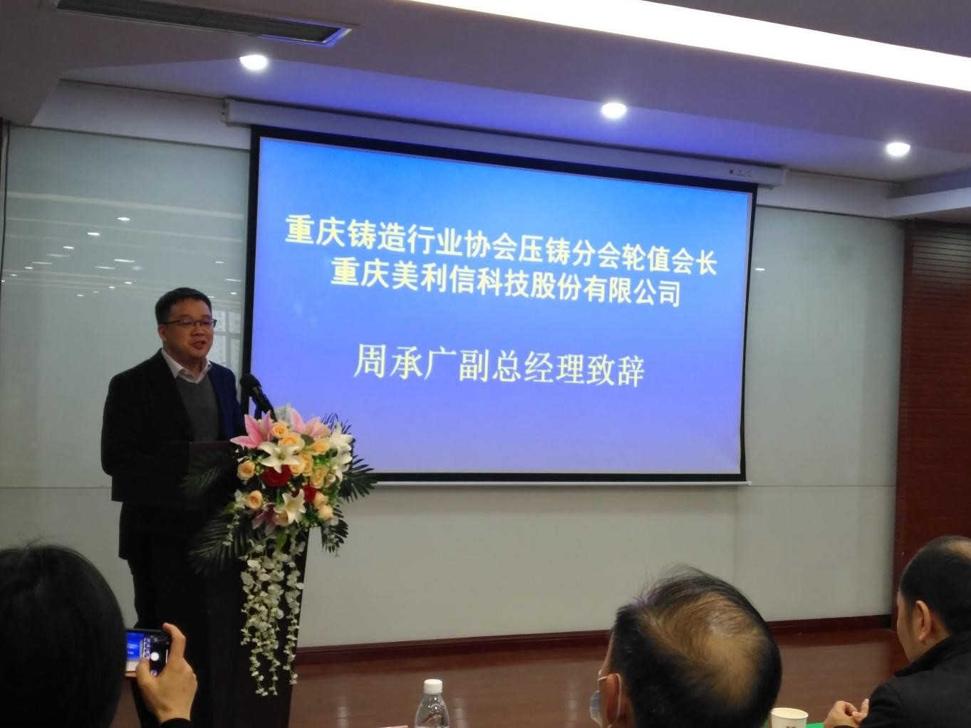 重慶美利信科技股份有限公司副總經理周承廣致辭 接著,舉行2021-2022兩年度壓鑄分會輪值會長交接儀式。重慶美利信科技股份有限公司副總經理周承廣當選為2022年度壓鑄分會輪值會長,并發表致辭。他在致辭中表示,“感謝宗申動力零部件事業部李小華會長在2021年的辛勤付出,在重慶鑄造協會的領導下度過了2021年的“寒冬”。2022年,機遇與挑戰并存。面對困難,我的倡議是:今后,鑄造行業同仁唯有同舟共濟,取長補短,并肩作戰,互惠互利、齊心協力,才能共同推進鑄造行業的高質量發展,把鑄造行業做大、做強。”