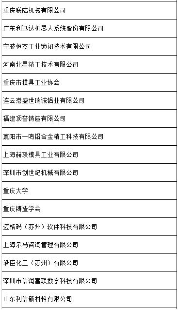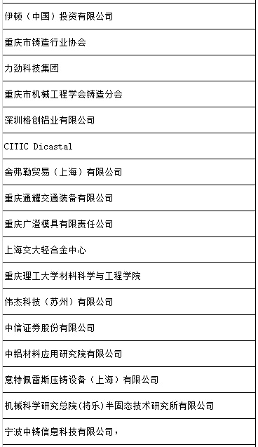 目前,已有400余名參會代表報名參會,本次會議得到了力勁科技集團、廣東伊之密精密機械股份有限公司、布勒 (中 國)機械制造有限公司、意特佩雷斯壓鑄設備(上海)有限公司、偉杰科技(蘇州)有限公司、重慶美利信科技股份有限公司、重慶長安汽車股份有限公司、重慶順多利機車有限責任公司的大力支持。