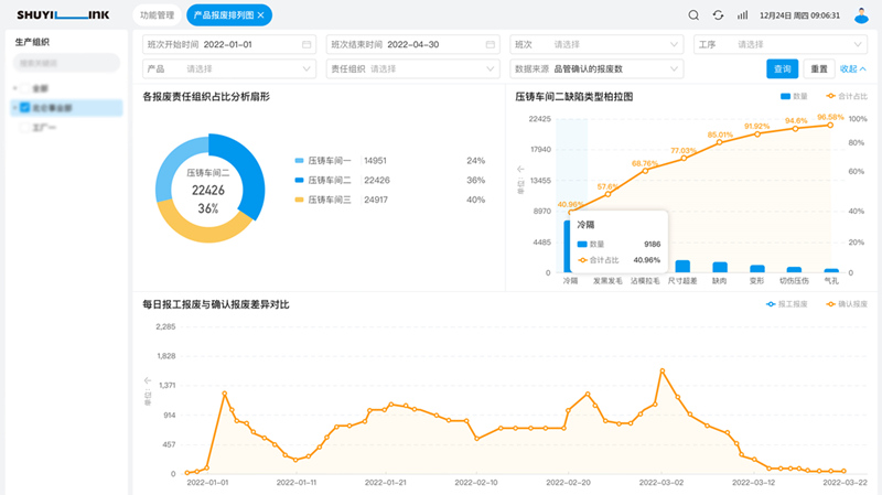 質(zhì)量管理流程示意圖 全流程質(zhì)量閉環(huán)管理 采用新一代物聯(lián)技術(shù)實現(xiàn)全流程質(zhì)量閉環(huán)管理,打通數(shù)據(jù)完整循環(huán)。將檢測設(shè)備全面聯(lián)網(wǎng),直接獲取設(shè)備的過程檢測數(shù)據(jù),并通過掃碼、刷卡的方式,將人為送檢流程納入數(shù)字化系統(tǒng)管控范圍,實現(xiàn)檢驗結(jié)果的自動判定生成,大幅度幫助客戶建立起全質(zhì)量閉環(huán)管理機制。 敏捷質(zhì)量控制 通過將業(yè)務(wù)操作流程、質(zhì)量檢測流程數(shù)字化,實現(xiàn)全過程敏捷質(zhì)量控制。當檢測過程中發(fā)現(xiàn)質(zhì)量檢驗不合格,提供遠程一鍵鎖機功能;若事后發(fā)現(xiàn)質(zhì)量問題可以通過移動端進行一鍵待定,快速鎖定所有可疑品并防止流出。快速的信息反饋、敏捷的質(zhì)量結(jié)果處理,結(jié)合看板、短信、郵件、OA、智能手表等多種工具有效地為客戶提升生產(chǎn)過程的質(zhì)量管理效率,大幅度降低質(zhì)量報廢成本。 質(zhì)量管理數(shù)據(jù)透明 數(shù)字化讓質(zhì)量管理數(shù)據(jù)全透明,以實時準確的數(shù)據(jù)驅(qū)動透明化生產(chǎn)和運營決策。系統(tǒng)可實現(xiàn)質(zhì)量管理報表直出,如自動生成質(zhì)量報廢柏拉圖、SPC分析圖,自動計算CPK等,輕松節(jié)省每日 / 每周 / 每月的質(zhì)量數(shù)據(jù)分析工作時間。同時可實時監(jiān)控質(zhì)量改善的數(shù)據(jù)趨勢,讓現(xiàn)場的所有改善因素都有準確的數(shù)據(jù)支撐,提升全局精細化管控能力,實現(xiàn)質(zhì)量全追溯管理。