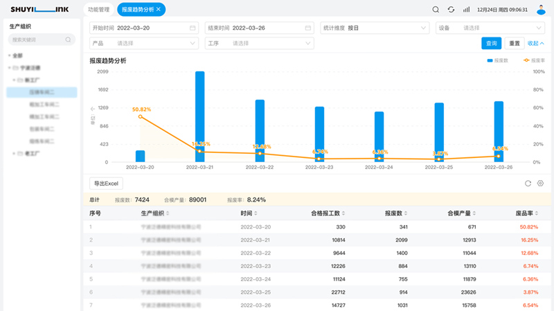 產(chǎn)品報廢趨勢分析圖 智慧決策服務(wù) 工業(yè)數(shù)據(jù)大腦提供智慧決策服務(wù)。基于數(shù)益工聯(lián)DFS數(shù)字工廠系統(tǒng)可以獲得生產(chǎn)現(xiàn)場海量的工藝和質(zhì)量過程數(shù)據(jù)、結(jié)果數(shù)據(jù)等,并且確保了數(shù)據(jù)的實時、準確和完整,通過DFS的大數(shù)據(jù)分析平臺,實現(xiàn)基于AI的質(zhì)量異常自動感知,助力數(shù)字化工廠的質(zhì)量管理更上一層樓,實現(xiàn)智能、高效的質(zhì)量管理。 DFS數(shù)字工廠系統(tǒng)的數(shù)字化質(zhì)量管理模塊,以價值創(chuàng)造為衡量標準,以精益管理思想為核心,結(jié)合強大的物聯(lián)采集技術(shù)和大數(shù)據(jù)分析能力,賦能離散制造業(yè)數(shù)字化轉(zhuǎn)型升級。 關(guān)于數(shù)益 數(shù)益工聯(lián)致力于打造基于數(shù)據(jù)流+價值流的離散制造業(yè)數(shù)字化軟件;應(yīng)用新一代的物聯(lián)網(wǎng)技術(shù)與豐富的現(xiàn)場交互手段,融合工業(yè)工程精益思想,為離散制造業(yè)客戶的數(shù)字化升級提供從規(guī)劃到實施落地的端到端工廠級解決方案;打造行業(yè)與客戶的工業(yè)數(shù)據(jù)平臺,持續(xù)提供數(shù)據(jù)智能服務(wù)。數(shù)益工聯(lián)團隊以 IE+IT 為核心能力,實現(xiàn)產(chǎn)品和技術(shù)的雙輪驅(qū)動,旨在服務(wù)離散制造業(yè)客戶通過數(shù)字化顯著改善質(zhì)量管理水平、提升企業(yè)生產(chǎn)效率、降低制造成本。 迄今,數(shù)益工聯(lián)團隊已在近十多個行業(yè)落成全球領(lǐng)先的數(shù)字化標桿工廠。目前分布寧波、上海、蘇州、廣州四地,可實現(xiàn)跨區(qū)域數(shù)字化工廠服務(wù)。