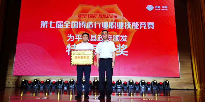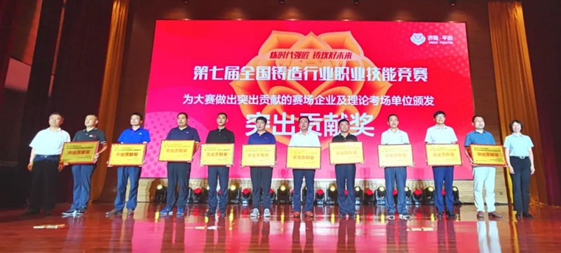 同時,競賽主辦單位為大賽做出突出貢獻的玫德集團有限公司、濟南二機床鑄造有限公司、濟南匯發(fā)科技有限公司、平陰縣胡莊制修廠、濟南平陰天宮鑄造有限公司、濟南市平陰縣瑪鋼廠、濟南弘正科技有限公司、濟南格藍壓縮機有限公司、山東力嘉輕量化科技有限公司、山東深泉技師學(xué)院等9家企業(yè)及理論考場單位頒發(fā)“突出貢獻獎”。