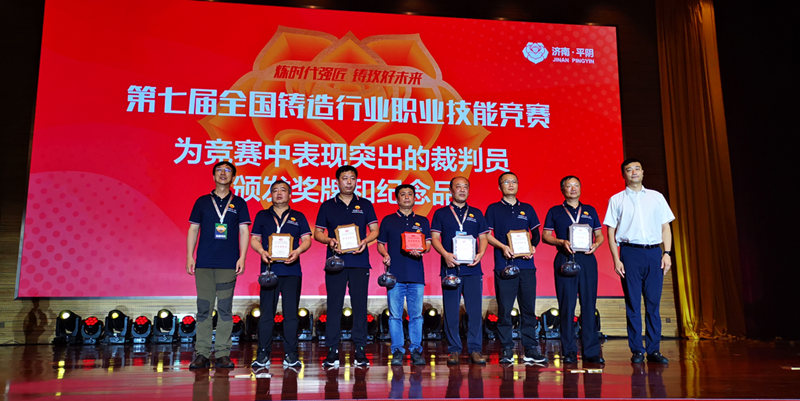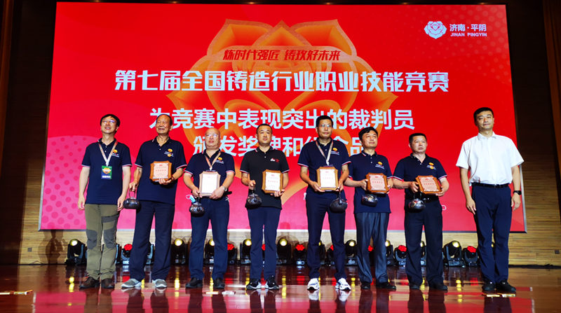 中國機械工業(yè)聯(lián)合會副會長、中國鑄造協(xié)會會長張立波,平陰縣委書記王秀成,濟南市人社局副局長孟昭華,中國鑄造協(xié)會執(zhí)行副會長兼秘書長張志勇,平陰縣委副書記、縣長潘建軍,中國鑄造協(xié)會執(zhí)行副會長范琦、專務(wù)兼常務(wù)副秘書長王東生,平陰縣人大常委會主任尚海成、政協(xié)主席劉忠亮、經(jīng)濟開發(fā)區(qū)管委會主任李子元,中國熱處理協(xié)會秘書長呂東顯,山西省晉城市政府辦公室一級調(diào)研員上官東亮,玫德集團黨委書記、董事局副主席劉勇,金磚國家技能發(fā)展與技術(shù)創(chuàng)新大賽組委會副主任程帥,濟南圣泉集團股份有限公司副總經(jīng)理張吉祥,諾瑞肯集團亞太區(qū)高級副總裁、迪砂中國總經(jīng)理魏寶華等領(lǐng)導(dǎo),以及來自山東、遼寧、香港、湖北、山西、天津、江蘇、河南、廣東、吉林、江西、廣西、河北、齊齊哈爾、晉城、泊頭、溧陽等協(xié)(學(xué))會社團組織領(lǐng)導(dǎo)參加閉幕式。 閉幕式上,賽程兩天來一直冒著酷暑奮戰(zhàn)在各自崗位上的裁判員、決賽賽場企業(yè)代表、參賽選手、媒體代表悉數(shù)到場。