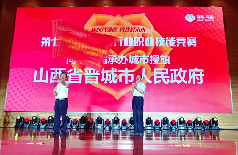張立波會長向下一屆技能大賽承辦城市——山西省晉城市人民政府授旗