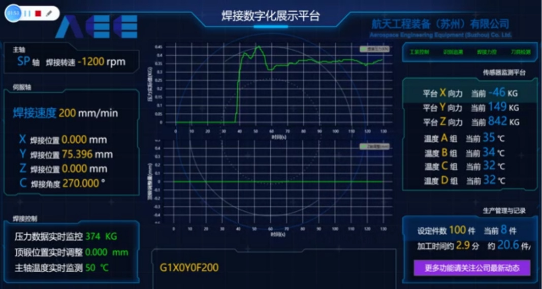 ▲銑削加工 該裝備搭載了全新一代探測(cè)通訊系統(tǒng)以及自主研發(fā)的熱管理系統(tǒng),在進(jìn)行固相加工過程中,實(shí)時(shí)高頻監(jiān)測(cè)焊接過程的扭矩、壓力等數(shù)值,結(jié)合高清攝影頭對(duì)焊接形貌的實(shí)時(shí)分析,經(jīng)過系統(tǒng)運(yùn)算并結(jié)合加工工藝庫記錄參數(shù)進(jìn)行分析,對(duì)加工參數(shù)調(diào)整和熱量管理系統(tǒng)介入時(shí)機(jī)進(jìn)行判斷并做出響應(yīng),實(shí)現(xiàn)了制造的閉環(huán)控制,有效保障了構(gòu)件成品質(zhì)量,提高了生產(chǎn)效率。
