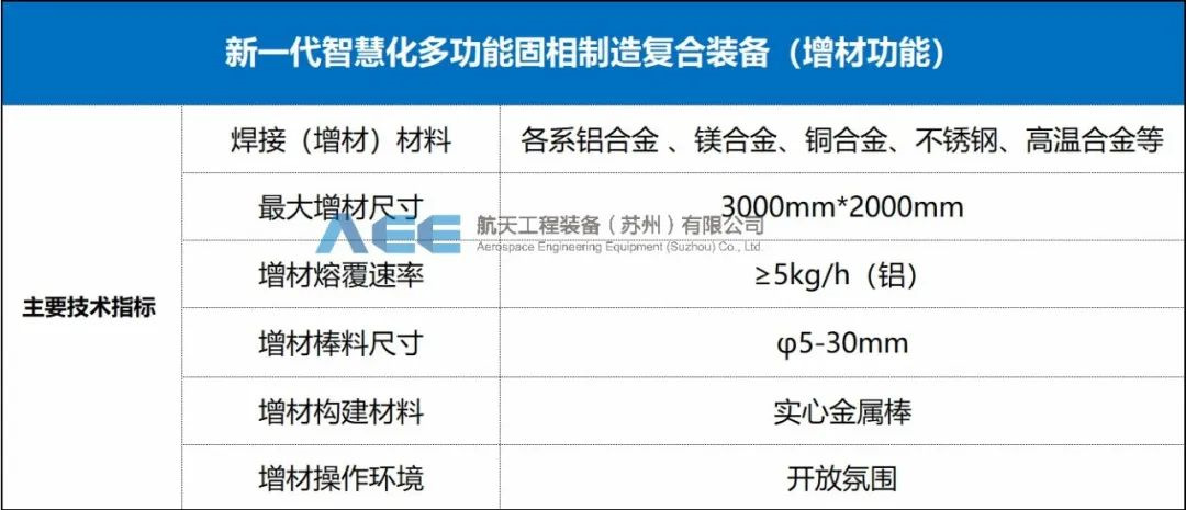 ![]() ▲新一代智慧化固相復(fù)合制造裝備 由航天工程裝備(蘇州)有限公司(AEE)與澳門發(fā)展及質(zhì)量研究所(IDQ)聯(lián)合研制的“新一代智慧化多功能固相制造復(fù)合裝備”重磅發(fā)布!該裝備集固態(tài)增材、攪拌摩擦焊、摩擦堆焊、機(jī)加工等功能于一體,使得構(gòu)件的一站式高效制備和加工成為現(xiàn)實(shí),標(biāo)志著AEE固相制造技術(shù)及裝備研制能力達(dá)到新的高度!
