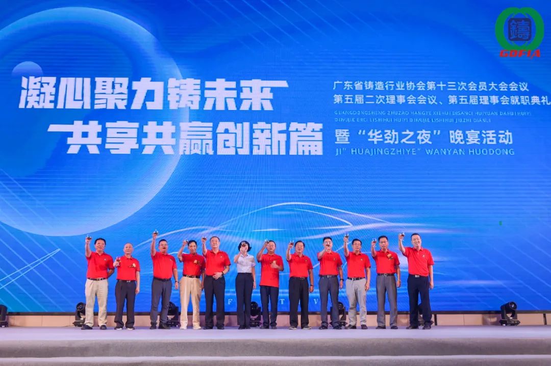 隨后,協會領導共同上臺舉行祝酒儀式。廣東省鑄造行業協會第五屆理事會就職典禮暨“華勁之夜”是相聚的家宴、合作的盛宴,相信在大家的共同努力下,廣東省鑄造行業協會將日新月異,步步登高,為鑄造行業新發展格局作出了積極貢獻。