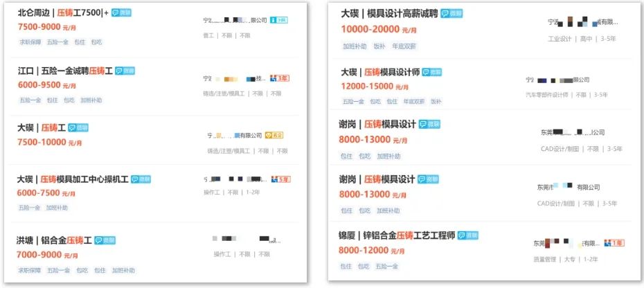 *某大型線上職位發(fā)布及招聘網(wǎng)站顯示,以寧波、東莞等為代表的壓鑄密集區(qū)域,職位數(shù)量較2022年12月環(huán)比增長(zhǎng)27.5%,較2022年2月同比增長(zhǎng)16.7%;其中,以模具設(shè)計(jì)、壓鑄工藝設(shè)計(jì)等為核心的技術(shù)型崗位,較其他崗位的薪資普遍高出25%-50%。 2023年,將是大壓鑄時(shí)代加速改變行業(yè)的一年,今年能否完成自我蛻變,實(shí)現(xiàn)職業(yè)發(fā)展的大跨步,是每一個(gè)壓鑄人需要重點(diǎn)思考的問(wèn)題。