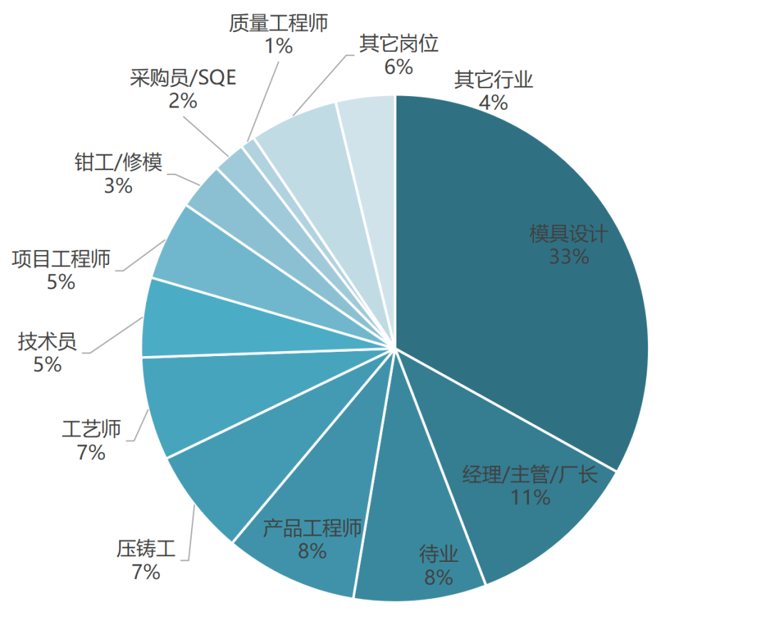 在千余名訓(xùn)練營(yíng)學(xué)員中,珠三角壓鑄人展現(xiàn)出了最大的學(xué)習(xí)興趣,適創(chuàng)研究院注意到,僅廣東一省的兄弟們就占據(jù)了超過(guò)四分之一的群體,且畢業(yè)率和優(yōu)秀榮譽(yù)率十分突出;行業(yè)重心地區(qū)——浙江省的學(xué)員人數(shù)緊隨其后,位居第二;江蘇省壓鑄兄弟的學(xué)習(xí)意愿也頗為突出,位列第三。 在訓(xùn)練營(yíng)中,盡管千余名壓鑄兄弟身份各異,涵蓋了從現(xiàn)場(chǎng)技術(shù)到上級(jí)主管等十余種不同的崗位,但他們永不停止的求知心態(tài),卻反映出了在新趨勢(shì)下,壓鑄行業(yè)“上下齊心,協(xié)同共進(jìn)”繁榮奮斗的景象,其中,設(shè)計(jì)類(lèi)崗位(模具設(shè)計(jì)、工藝設(shè)計(jì)等工程師)作為當(dāng)今市場(chǎng)上最搶手的技術(shù)型人才,報(bào)名也最踴躍,是學(xué)員中占比最高的類(lèi)別。