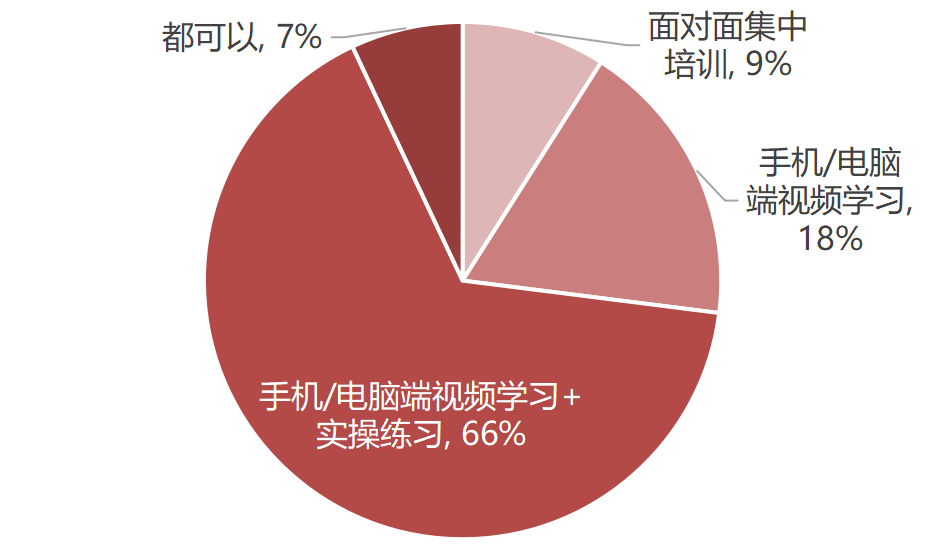 如今工作和家庭壓力不斷攀升,一門(mén)合格的培訓(xùn)課程,首要標(biāo)準(zhǔn)就是“高效”和“實(shí)用”,減少時(shí)間浪費(fèi)。訓(xùn)練營(yíng)結(jié)果顯示,越來(lái)越繁忙的壓鑄人們,相較以往的面授課程的形式,也更注重知識(shí)在實(shí)操層面的落地,傾向“手機(jī)/電腦端視頻學(xué)習(xí)+實(shí)操練習(xí)”的學(xué)員高達(dá)66%,可以看出,新時(shí)代的壓鑄人們不僅重視理論,也更注重實(shí)踐,快速轉(zhuǎn)化知識(shí)點(diǎn)為實(shí)用技能。