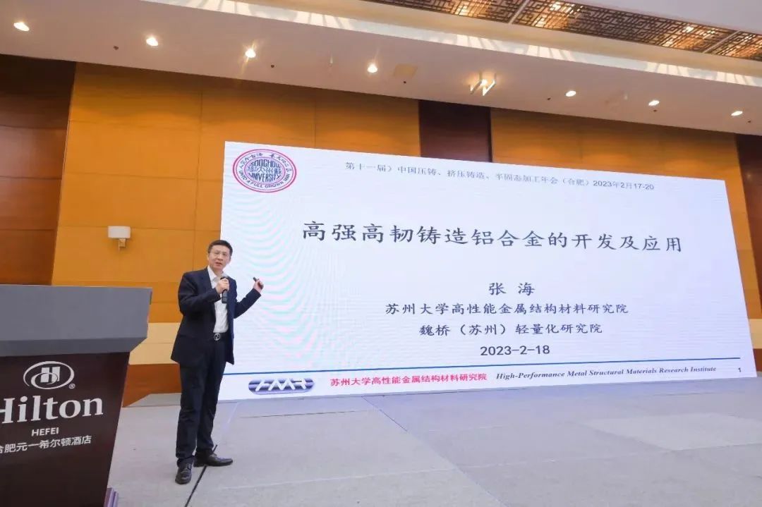 蘇州大學(xué)張海教授以《高強(qiáng)高韌鑄造鋁合金的開發(fā)及應(yīng)用》為題作報(bào)告