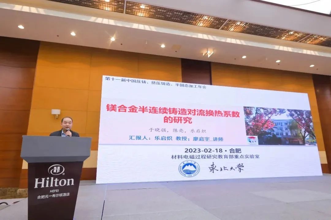 東北大學(xué)樂啟熾教授(廖啟宇,代樂啟熾?yún)R報(bào))以《鎂合金半連續(xù)鑄造對(duì)流換熱系數(shù)研究》為題作報(bào)告