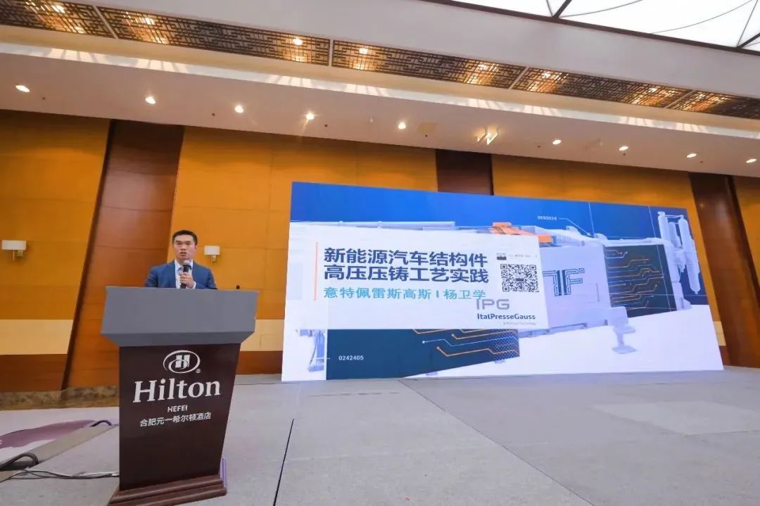 意特佩雷斯壓鑄(上海)有限公司經(jīng)理?xiàng)钚l(wèi)學(xué)以《新能源汽車結(jié)構(gòu)件高壓壓鑄工藝智能應(yīng)用實(shí)踐分享》為題作報(bào)告