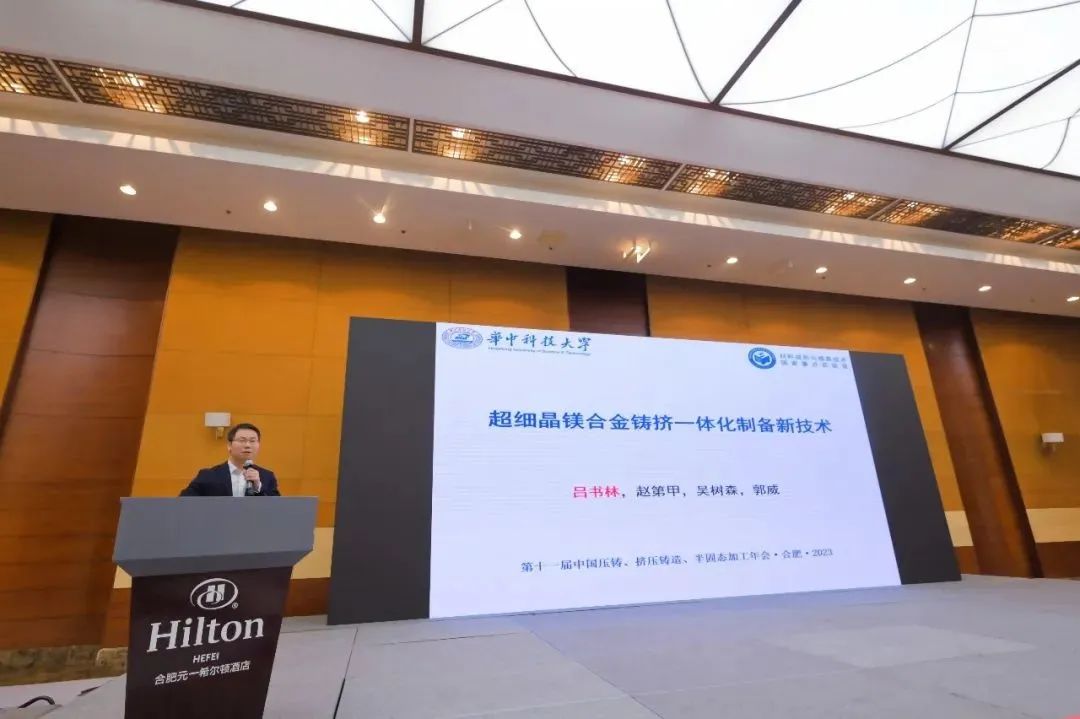 華中科技大學(xué)副教授呂書林以《超細(xì)晶鎂合金鑄擠一體化制備新技術(shù)》為題作報(bào)告