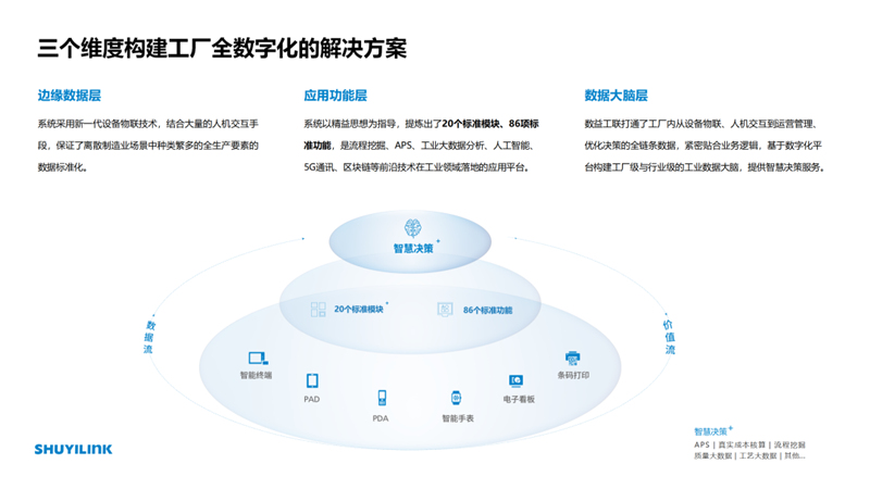 (3)制造企業(yè)對(duì)數(shù)字化的需求強(qiáng)烈,尤其是相對(duì)大型的企業(yè),本身要進(jìn)行大規(guī)模數(shù)字化改造,和整個(gè)自動(dòng)化結(jié)合,和產(chǎn)品的升級(jí)換代結(jié)合。高質(zhì)量的中小制造企業(yè)也亟待享受數(shù)字化所帶來(lái)的紅利,來(lái)加速整個(gè)生產(chǎn)效率的提高。這將是中國(guó)制造彎道超車(chē)的機(jī)會(huì)。 (4)新發(fā)展格局下,壓鑄行業(yè)迎來(lái)了結(jié)構(gòu)優(yōu)化的加速調(diào)整期,作為”高溫、高粉塵、高體力強(qiáng)度”的企業(yè),壓鑄企業(yè)的內(nèi)部管理能力、成本控制能力,外部市場(chǎng)抵御風(fēng)險(xiǎn)能力仍有提升空間。數(shù)字化能有效助力壓鑄企業(yè)打通全生產(chǎn)要素?cái)?shù)據(jù)流、提高設(shè)備開(kāi)機(jī)率使用率,實(shí)現(xiàn)產(chǎn)品全追溯。 03.技術(shù)革新特點(diǎn) (1)數(shù)益工聯(lián)擁有極強(qiáng)的數(shù)據(jù)采集能力,能夠采用新一代設(shè)備物聯(lián)技術(shù),結(jié)合大量的人機(jī)交互手段,將離散制造業(yè)場(chǎng)景中的 “人、機(jī)、料、法、環(huán)、測(cè)、能源”等種類繁多的全生產(chǎn)要素?cái)?shù)據(jù)標(biāo)準(zhǔn)化。 (2)以精益思想為指導(dǎo),提煉出20個(gè)標(biāo)準(zhǔn)模塊、86項(xiàng)標(biāo)準(zhǔn)功能,應(yīng)用不同模塊內(nèi)容切實(shí)解決痛點(diǎn),實(shí)現(xiàn)企業(yè)橫向業(yè)務(wù)全流程打通,縱向數(shù)字化管理全人員打通。(3)擁有工業(yè)數(shù)據(jù)產(chǎn)品研發(fā)能力,緊密貼合業(yè)務(wù)邏輯,基于數(shù)字化平臺(tái)構(gòu)建工廠級(jí)與行業(yè)級(jí)的工業(yè)數(shù)據(jù)大腦,實(shí)現(xiàn)工廠APS自動(dòng)排產(chǎn)、工業(yè)大數(shù)據(jù)分析,設(shè)備的預(yù)測(cè)性維修、智能的異常感知等多種智能化的功能提供智慧決策服務(wù),將數(shù)據(jù)價(jià)值從系統(tǒng)里提升出來(lái)。 04.創(chuàng)新產(chǎn)品優(yōu)勢(shì) (1)“IE+IT”雙輪驅(qū)動(dòng)打造全5G壓鑄數(shù)字工廠 顛覆國(guó)際主流的改造設(shè)備、改造生產(chǎn)“大改大造”模式,不同于國(guó)內(nèi)純軟件定制路線,數(shù)益采用“IE(工業(yè)工程)+IT(信息技術(shù))”模式,將精益工程理念融入軟件系統(tǒng),實(shí)現(xiàn)了從現(xiàn)場(chǎng)到業(yè)務(wù)的縱向集成。核心團(tuán)隊(duì)為清華背景,有深厚的制造業(yè)精益運(yùn)營(yíng)管理能力和豐富的壓鑄行業(yè)數(shù)字化工廠實(shí)施經(jīng)驗(yàn),旨在服務(wù)離散制造業(yè)客戶通過(guò)數(shù)字化顯著改善質(zhì)量管理水平、提升企業(yè)生產(chǎn)效率、降低制造成本。 (2)實(shí)現(xiàn)壓鑄工廠超90%數(shù)字化管理需求標(biāo)準(zhǔn)化 數(shù)益工聯(lián)按照工業(yè)工程和精益管理的底層理念,考慮了眾多細(xì)分行業(yè)和客戶場(chǎng)景,構(gòu)建了20個(gè)產(chǎn)品模塊、86個(gè)標(biāo)準(zhǔn)功能,69個(gè)核心亮點(diǎn)。針對(duì)大型制造企業(yè),實(shí)現(xiàn)了工廠85%數(shù)字化管理需求的標(biāo)準(zhǔn)化和可配置化,15% 的個(gè)性化服務(wù)。具體到壓鑄行業(yè),已達(dá)到高度的適配性,定制化服務(wù)比例僅需5%~10%,可為企業(yè)提供可靠完善的壓鑄數(shù)字化工廠解決方案。 (3)“131”快速交付與投資回報(bào) 1周規(guī)劃,數(shù)字化工廠項(xiàng)目顧問(wèn)與設(shè)備物聯(lián)工程師通過(guò)現(xiàn)場(chǎng)調(diào)研工廠的設(shè)備、產(chǎn)品制造、運(yùn)營(yíng)管理及倉(cāng)儲(chǔ)物流等實(shí)際情況,制訂有效的數(shù)字化工廠規(guī)劃落地方案。 3個(gè)月上線,根據(jù)規(guī)劃的模塊與功能,設(shè)計(jì)標(biāo)準(zhǔn)化的項(xiàng)目實(shí)施路徑,構(gòu)建兩條主線(數(shù)字工廠實(shí)施藍(lán)圖、物聯(lián)采集)和三條支線(網(wǎng)絡(luò)、服務(wù)器、人機(jī)交互設(shè)備),最終實(shí)現(xiàn)設(shè)備的物聯(lián)采集和生產(chǎn)管理的全面數(shù)字化。 1年投資回收,基于數(shù)據(jù)應(yīng)用與價(jià)值分析,持續(xù)跟蹤運(yùn)營(yíng)指標(biāo)的改善,提升生產(chǎn)效率、改善產(chǎn)品質(zhì)量、優(yōu)化庫(kù)存交期,通過(guò)提質(zhì)、增效、降本實(shí)現(xiàn)數(shù)字化工廠投入的快速回收。 05.創(chuàng)新技術(shù)專利情況 本產(chǎn)品屬于國(guó)家支持的一、電子信息(一)軟件11.云計(jì)算與移動(dòng)互聯(lián)網(wǎng)軟件高新技術(shù)領(lǐng)域。2021年12月,數(shù)益工聯(lián)制造執(zhí)行系統(tǒng)V1.0.0獲得浙江省首臺(tái)(套)產(chǎn)品,省內(nèi)首版次軟件認(rèn)定。軟件及相關(guān)技術(shù)均屬企業(yè)自主研發(fā),擁有技術(shù)全部所有權(quán),目前已授權(quán)計(jì)算機(jī)軟件著作權(quán)18項(xiàng),已授權(quán)外觀專利7項(xiàng),正在申請(qǐng)中發(fā)明專利5項(xiàng)。作為起草單位參與的1項(xiàng)國(guó)家標(biāo)準(zhǔn)處于審批階段,工業(yè)互聯(lián)網(wǎng)平臺(tái)-應(yīng)用實(shí)施指南(20211170-T-339)。