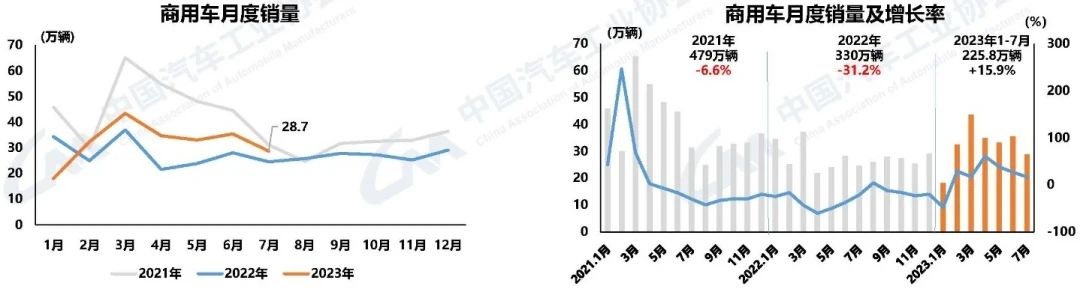 其中,7月,乘用車產銷分別完成211.5萬輛和210萬輛,同比分別下降4.3%和3.4%;商用車產銷分別完成28.6萬輛和28.7萬輛,同比分別增長17%和16.8%;新能源汽車產銷分別完成80.5萬輛和78萬輛,同比分別增長30.6%和31.6%,市場占有率達到32.7%。