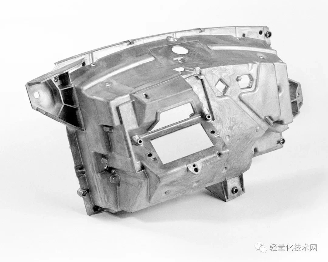 1、該部件體現了鎂壓鑄的主要優勢。設計自由度高、結構輕便、機械性能(尤其是剛性)極佳、可用一個部件替代多個單獨部件;