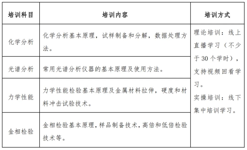 五、培訓及考核安排 考核分為理論考試及實際操作考試,理論考試采用線上答卷方式,實操考試采取線下實際操作方式。經考核全部合格后,將由機械理化人員能評委統一頒發能力等級證書。 1.培訓時間: 9月13日-19日:線上理論培訓及考試 9月20日-22日:線下實操培訓及考試 2.培訓地點:中山市廣重鑄軋鋼有限公司(位于廣東省中山市黃圃鎮鯉魚嘴工業開發區) 3.線下實操培訓及考核安排如下: