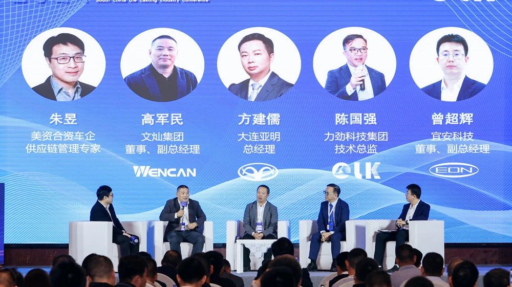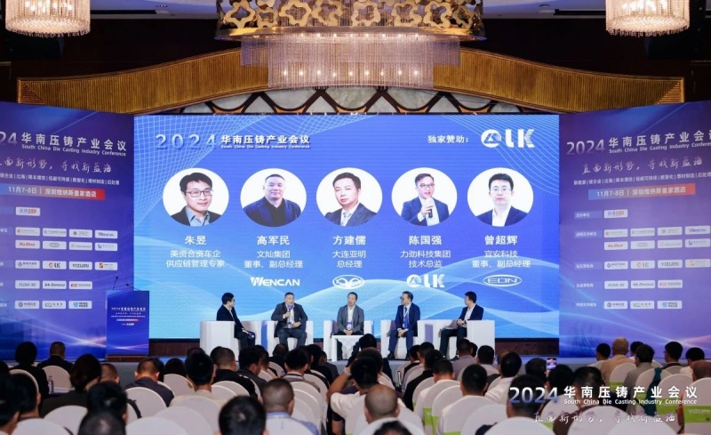 圓桌訪談 Roundtable Discussion 繼11月7日的鎂合金技術應用論壇、全國鑄造學會FICMES"有色壓鑄專家組會議"、西門子AI賦能壓鑄研討會以及工廠參觀之后,11月8日上午主辦方舉行了簡約而隆重的開幕式。開幕式結束后,備受期待的“2024華南壓鑄產業會議-圓桌訪談之對話行業領袖”環節拉開帷幕。本次圓桌訪談邀請了多位行業內的重量級嘉賓,包括大連亞明汽車部件股份公司總經理方建儒先生、文燦集團董事兼副總經理高軍民先生、力勁科技集團技術總監陳國強先生、宜安科技董事兼副總經理曾超輝先生等。美資合資車企供應鏈管理專家朱昱先生擔綱主持。四位嘉賓圍繞壓鑄行業的新趨勢、海外投資策略、企業管理方法以及成本控制與效率提升等熱點話題展開了深入討論,為參會者提供了寶貴的參考和建議。