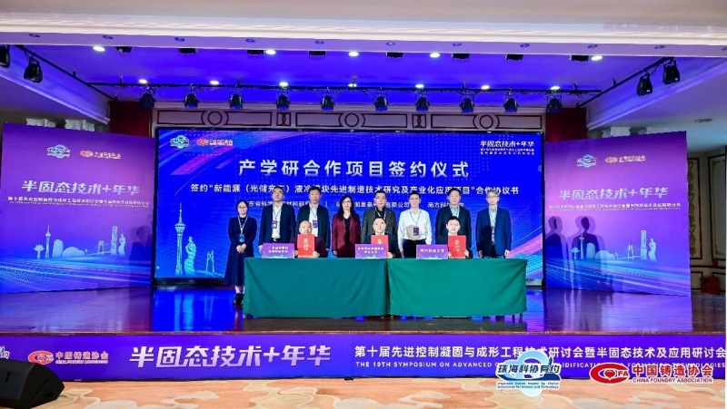 珠海市香洲區人民政府副區長黃文勝、中國鑄造協會常務副會長高巍、中國鑄造協會半固態工作委員會主任朱強分別作大會致辭 領導致辭畢,進入產學研合作項目簽約儀式。儀式上,珠海市潤星泰電器有限公司、廣東省科學院新材料研究所、南方科技大學共同簽署了“新能源(光儲充車)液冷模塊先進制造技術研究及產業化應用項目”合作協議書。各方將整合優勢資源,共同構建先進制造技術的研發與轉化平臺。