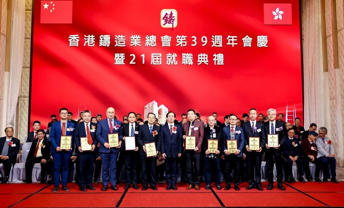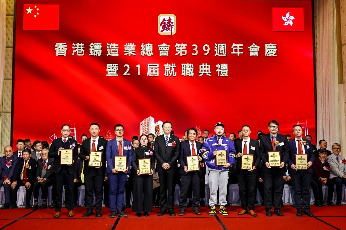 ![]() 璀璨香江,熠熠生輝。2024年12月16日,香港鑄造業總會第39周年會慶暨第21屆理事會架構成員就職典禮,在香港九龍灣百樂金宴國際宴會廳隆重舉行。這一盛會不僅見證了香港鑄造業總會新一屆理事會架構成員的正式就職,更彰顯了香港鑄造業的團結與蓬勃活力。 香港商務及經濟發展局副局長陳百里博士,中央人民政府駐香港特別行政區聯絡辦公室經濟部副部長兼貿易處負責人周強先生,亞洲鑄造業聯合會當值主席、中國機械工業聯合會副會長、中國鑄造協會會長張立波先生,中國機械工程學會鑄造分會副理事長、中國機械總院集團沈陽鑄造研究所有限公司董事長謝華生先生,中國共產黨十八大、十九大代表、中國鑄造協會名譽會長、共享集團股份有限公司董事長彭凡先生,以及來自全國鑄造行業的兄弟協會/學會領導、香港鑄造業總會會員企業代表、專業媒體記者等500余名嘉賓,共同見證了這一重要時刻。