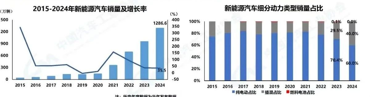 值得注意的是,我國2024年的新能源汽車產銷數量均突破了1200萬輛大關,這已經是我國連續10年位居新能源汽車產銷量的世界首位。