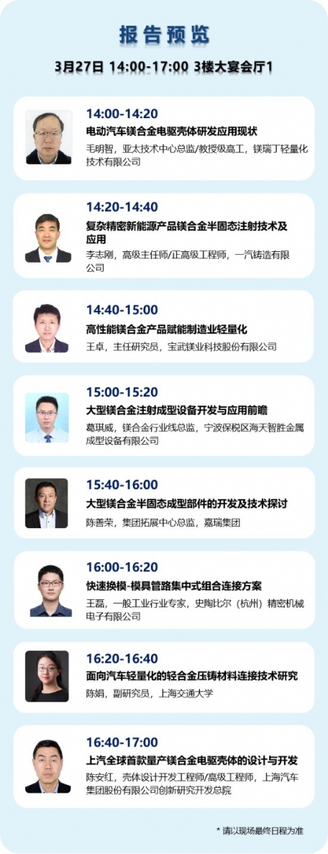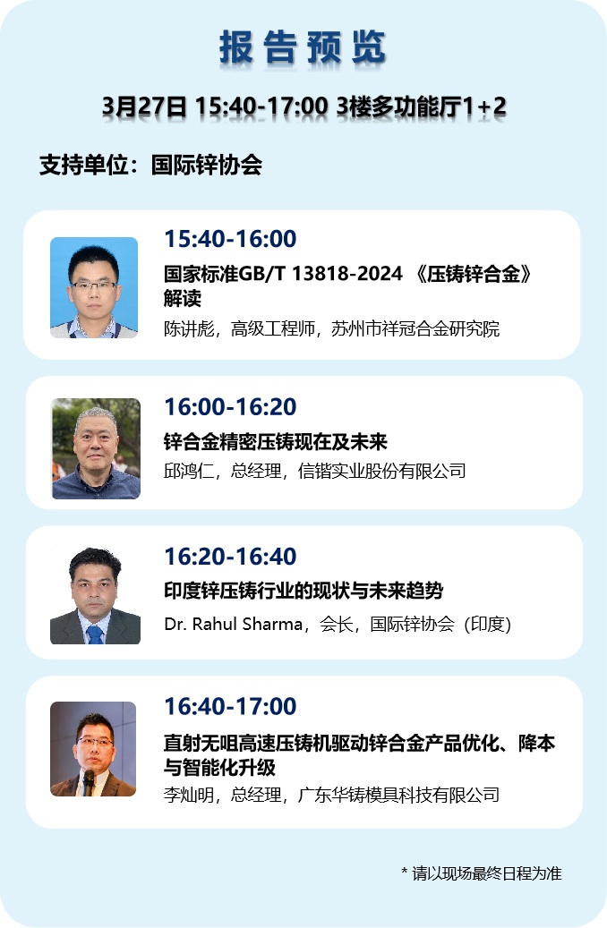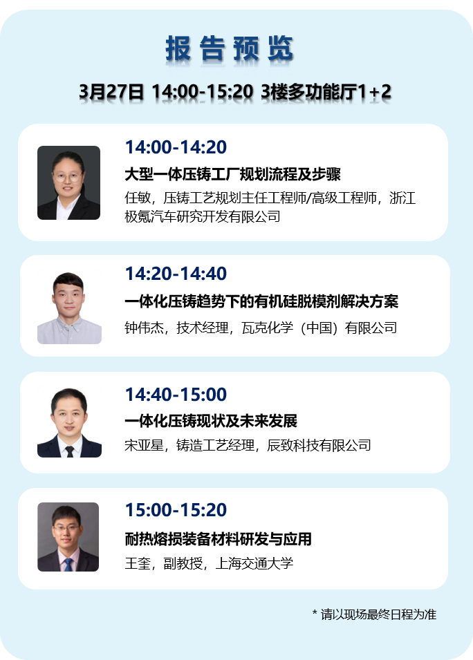會議以“鏈動全球壓鑄”為目標,與全球壓鑄同仁一起剖析壓鑄行業最新發展趨勢,探討競爭格局,為行業未來發展提前布局、科學規劃提供一些思路。誠邀壓鑄同仁蒞臨參會! 會議亮點 主會場:技術報告