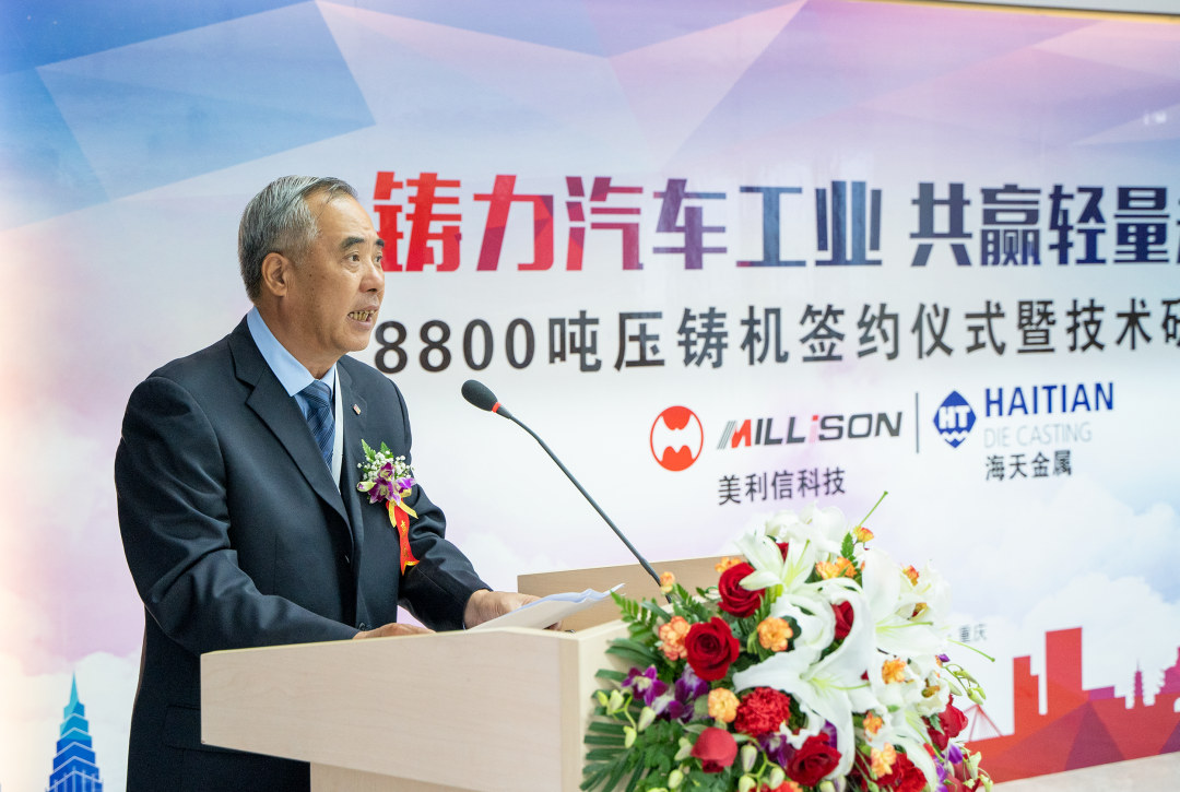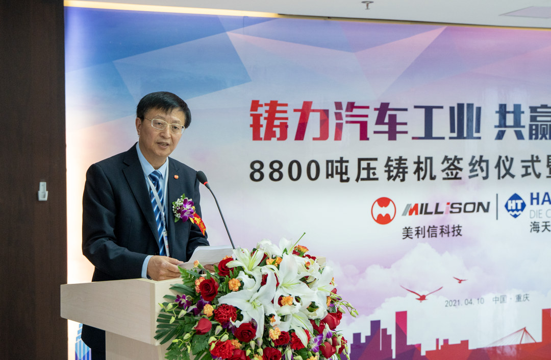 余亞軍總裁發(fā)表致辭 儀式上,余亞軍總裁表示:當前,美利信科技聚焦“5G通信”和“新能源+智能網(wǎng)聯(lián)汽車”兩大前瞻領(lǐng)域,與全球優(yōu)質(zhì)客戶同步開發(fā)新能源汽車零部件及大型結(jié)構(gòu)件的輕量化。海天金屬8800噸壓鑄機的引進,將徹底解決未來生產(chǎn)大型汽車結(jié)構(gòu)件的工藝瓶頸,實現(xiàn)全流程“中國智造”。美利信科技將繼續(xù)以振興民族工業(yè)為己任,與以海天為代表的國產(chǎn)優(yōu)秀裝備供應(yīng)商加深合作,共同推動中國壓鑄產(chǎn)業(yè)的興旺發(fā)展,走向世界!