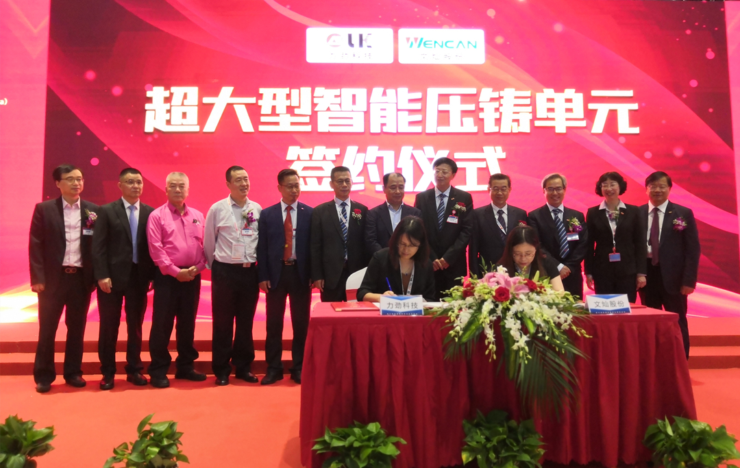 文燦股份副總經理高軍民與力勁集團深圳領威科技有限公司總經理潘玲玲簽約 中國鑄造協會會長張立波先生、文燦股份董事長兼總經理唐杰雄先生、力勁集團創始人劉相尚先生見證簽約儀式,并分別致辭。中國鑄造協會常務副會長溫平、執行副會長兼秘書長張志勇、執行副會長范琦,廣東省鑄造協會會長陳永成,香港鑄造業總會名譽會長李遠發、梁換操、會長蔡子芳,上海市壓鑄技術協會副秘書長宋海燕、夏智華,蘇州市壓鑄技術協會輪值會長孫潔曉、執行會長張山根,中信證券、中金證券、南方基金、第一上海等金融代表,以及《壓鑄周刊》等媒體記者出席本次活動。