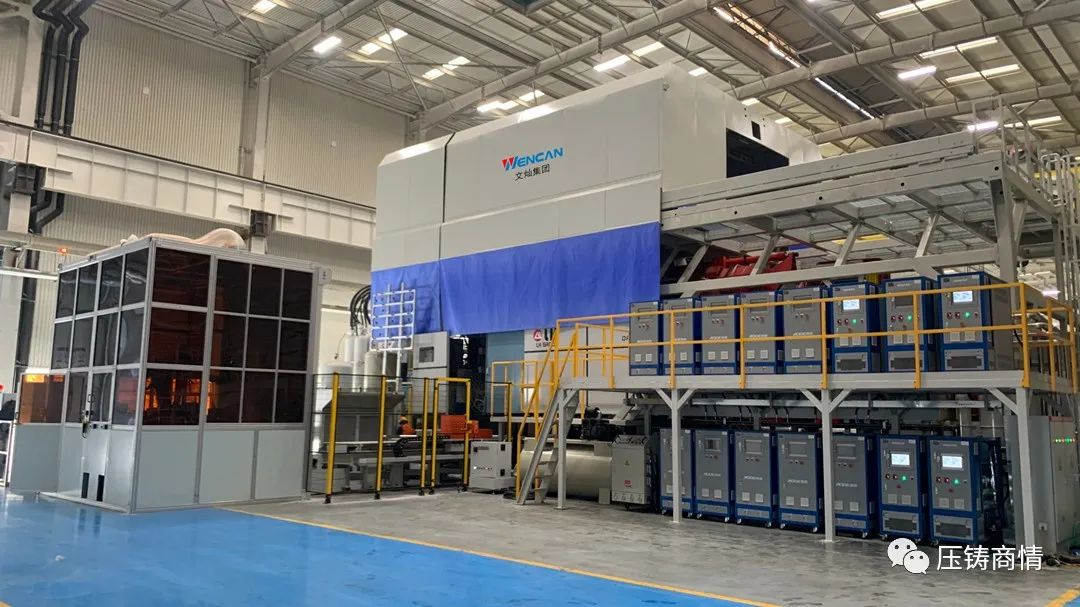 第二套9000T壓鑄島正在文燦集團南通生產基地安裝調試 據介紹,文燦集團9000T大型一體化壓鑄后底板汽車零部件,長寬尺寸約為1600 mm×1400mm,將被用于某造車新勢力頭部企業的SUV車型。而已完成白車身安裝的6000T一體化后底板,則將用于另一造車新勢力頭部企業新推出的轎車車型。 據了解,2021年,文燦集團與力勁集團簽約采購了9臺大型壓鑄機,包括1臺2800T機型、1臺3500T機型,3臺4500T機型,2臺6000T機型,以及2臺9000T機型。其中,2800T-6000T機型均為意德拉品牌X-PRESS系列兩板壓鑄機,9000T機型為力勁LK品牌的DreamPress系列兩板壓鑄機。文燦集團參與了其中的6000T、7000T、9000T機型的研發工作,這些機型是力勁為其量身打造的超大型壓鑄機。