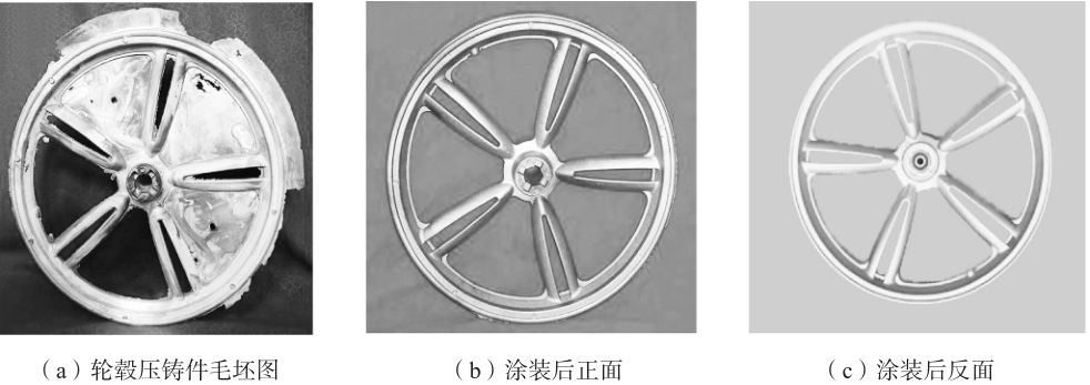 表4 信噪比均值與極差 當工藝參數為A1B3C1時,采用ProCAST軟件進行數值模擬,得到不考慮噪聲的缺陷體積(0.398 3 cm 3 )。當受噪聲因素影響時,缺陷的最大體積為0.436 1 cm 3 ,最小體積為0.319 9 cm 3 ,信噪比為8.211 4 dB,雖然比正交試驗表中任何一組試驗結果都大了一些,但也是信噪比值最大的,結果是一致的。 3、生產驗證 通過ProCAST軟件模擬結合穩健設計方法對壓鑄工藝參數進行優化下,得到的最佳壓鑄工藝參數為:壓射速度為0.9 m/s,鑄型溫度為260 ℃,澆注溫度為680 ℃。根據該工藝參數對鎂合金輪轂鑄件進行的大批量生產驗證,在實際生產中,壓鑄工藝參數分別取壓射速度為0.7~1.3 m/s,鑄型溫度為200~300 ℃,澆注溫度為650~710 ℃,結合生產效率需要,保壓時間設定為20 s。利用抗拉強度、伸長率、硬度和沖擊韌性四個力學性能指標進行表征,生產實踐表明,當壓射速度為0.8~1.0 m/s、澆注溫度為670~690 ℃、鑄型溫度為250~270 ℃時,鑄件的生產效率最高,力學性能最好,即品質最好。在最佳工藝參數下得到的輪轂鑄件(圖4),從圖4a可以看出,鎂合金輪轂壓鑄件充型完整,外觀無缺陷,經機加工后的輪轂表面光滑,加工成產品后對表面進行涂裝(圖4b、4c),外觀質量美觀。最后對鎂合金輪轂鑄件進行力學性能檢測結果為:抗拉強度為227 MPa、布氏硬度為HBS71、伸長率為10.7%和抗沖擊韌性為18.7×10 4 J/m 2 ,以上力學性能表明,該輪轂鑄件達到了輪轂技術標準要求,輪轂鑄件內部無嚴重缺陷,鑄件經過大批量生產后,產品質量穩定,表明上述模擬結果準確。