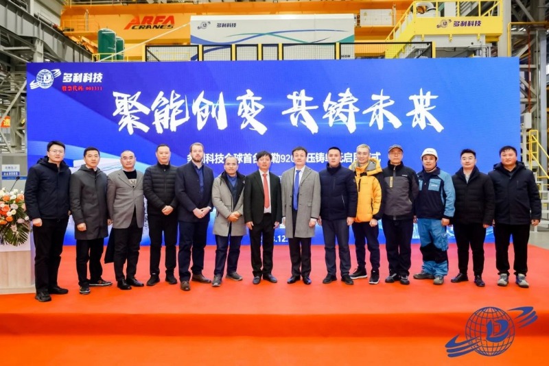 ![]() 瑞雪兆豐年!工廠外雪花飄飄,車間里熱鬧非凡。2023年12月18日下午,多利科技全球首臺布勒9200T壓鑄單元啟用儀式在多利鹽城工廠隆重舉行。這是繼6100T壓鑄單元之后,多利科技第二套超大型壓鑄單元正式投入生產。