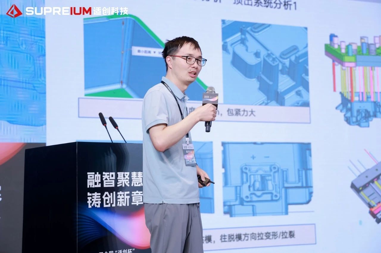 王珵教授團隊專注先進輕合金設(shè)計制備、精準(zhǔn)加工與改進、新材料開發(fā)與加工技術(shù)研究。基于團隊研究成果,王教授與大家分享了其團隊在《新型耐蝕高強鎂合金應(yīng)用與高效成型》方面的研究成果,闡述了新型高性能鎂合金對實現(xiàn)關(guān)鍵材料自主生產(chǎn),應(yīng)對行業(yè)輕量化重大需求的重要意義。 04 冠軍揭曉 選手們專業(yè)的設(shè)計作品和精彩的現(xiàn)場答辯,展現(xiàn)了行業(yè)人才的超高水準(zhǔn)。 經(jīng)過專家們的細致評審,最終,來自廣東文燦鑄造研究院有限公司、佛山市和陽精密金屬制品有限公司的“凌云隊”和來自東莞鴻圖金屬壓鑄電器制造有限公司、梧州市鴻圖精密壓鑄有限公司的“模力四射隊”,在作品中展現(xiàn)了全面的設(shè)計能力,贏得了專家評審們的一致認可,評分位列各自分組第一,分別榮獲大噸位組與小噸位組冠軍。 專家評語 大噸位組-凌云隊 通過多版方案的模擬對比,選取最優(yōu)解。產(chǎn)品填充行程最短,填充順暢,降低產(chǎn)品卷氣風(fēng)險。末端擠壓銷的使用,有效改善產(chǎn)品內(nèi)部縮松縮孔。通過熱電偶的監(jiān)控,及時了解模具溫度變化,更有針對性的調(diào)節(jié)模溫平衡,提高產(chǎn)品生產(chǎn)穩(wěn)定性。 小噸位組-模力四射隊 產(chǎn)品的細節(jié)改善較詳細,有利于后期的風(fēng)險規(guī)避,模具緊湊,壓鑄機噸位小,經(jīng)濟性好。采用滑塊頂出,預(yù)防產(chǎn)品變形,保證產(chǎn)品尺寸精度,運用抽真空排氣,有效保證產(chǎn)品卷氣風(fēng)險,提升產(chǎn)品質(zhì)量。