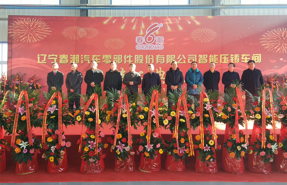 遼寧春潮汽車零部件股份有限公司智能壓鑄車間投產典禮 壓鑄周刊(2018年12月19日 阜新)昨日上午,阜新彰武經濟開發區彩旗飄揚,鞭炮齊鳴,遼寧春潮汽車零部件股份有限公司(“遼寧春潮”)智能壓鑄項目(一期)竣工投產典禮在這里隆重舉行。來自春潮唐山、遼寧兩地公司,阜新市、彰武縣各級政府及相關部門,主要客戶企業,設備、模具、原輔料供應商,大專院校,項目建設支持單位等單位的逾200名嘉賓出席了此次活動,共同見證屬于遼寧春潮的這一歷史時刻。 遼寧春潮智能壓鑄項目今年3月8日簽約落戶遼寧省的省級經濟開發區——阜新市彰武經濟技術開發區,由唐山春潮汽車零部件股份有限公司(下稱“春潮公司”)投資建設。項目占地面積10萬平米,建筑面積3萬平米,總投資3.5億元,分兩期投資,一期投資1.5億元。項目一期達產達效后,可年產鋁合金壓鑄件10000噸、精密加工件150萬件,年產值1.8億元,利稅1500萬元。