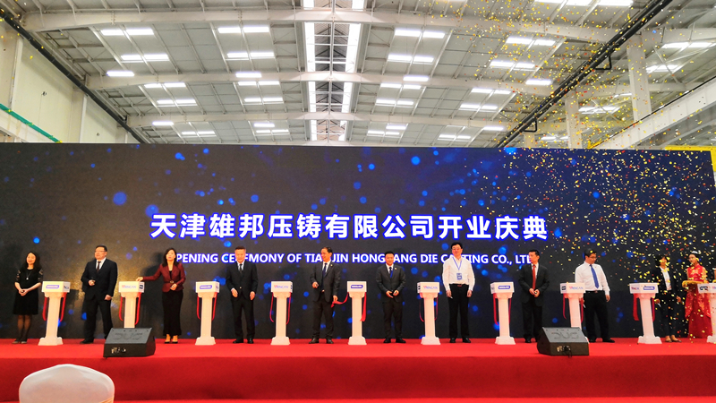 布勒壓鑄事業(yè)部全球總裁 Mr. Jonathan Abbis 致辭 生產基地覆蓋三大經濟 天津雄邦于2015年5月開工建設,總投資10億元,注冊資本4億元,占地面積10萬平米,建筑面積7.6萬平米,目前年產鋁合金壓鑄件2萬噸。天津雄邦是母公司文燦股份“北上戰(zhàn)略”的重要舉措。今天公司開業(yè),標志著文燦股份正式完成在珠三角、長三角、環(huán)渤海等三大經濟帶的戰(zhàn)略布局,形成自南向北、覆蓋中國主要的壓鑄產業(yè)聚集區(qū)、汽車整車及零部件產區(qū)的生產與配套格局。