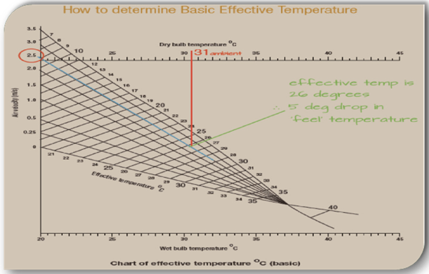 (風速對人體感受差異變化曲線) 稀釋異味 另外,工業節能風扇還可以消除異味及煙氣。空氣不流通時,產生的異味氣體,局部聚集、濃度過高;煙氣的產生,會在空間內局部高度形成煙層。工業節能扇,可有效讓整個空間氣流循環,快速稀釋局部異味氣體、煙霧濃度,結合現場排風換氣設備或門窗,可有效達到良好的換氣效果。
