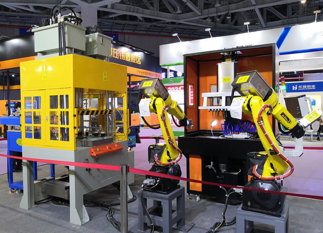 圣譽壓鑄后處理自動化生產線 圣譽智能總經理羅圣科先生介紹說:“圣譽智能致力于為壓鑄廠用戶,提供高效率、低成本的壓鑄及后道加工自動化解決方案。本屆展會,我們展示的壓鑄后道加工自動化方案,主要針對中小型鑄件后處理而開發。其主要優勢特點是鉆孔、攻牙可批量處理,精切不僅能清除渣包、料柄,更省去整形、去毛刺工序。” 另外,圣譽智能通過視頻方式,向專業觀眾推介了其多個壓鑄后處理解決方案的成功案例。其一是,“一出二”壓鑄件后處理解決方案,整個加工過程,涵括風冷、去渣包、雙頭銑邊、打磨拋光、碼垛等工序,一氣呵成,快捷高效。其二是,“一出三”壓鑄件后處理解決方案,生產加工全過程涵括了取件、水冷、精沖,以及托盤接料、渣包回爐等,省時省力。 羅圣科先生表示:“圣譽智能在壓鑄及后道加工自動化線及解決方案方面,具有強大的研發實力和豐富的實踐經驗,并儲備了許多成功的應用案例。我們可以針對不同的產品、不同的需求,提供定制化的非標自動化線解決方案,為用戶解決各種‘疑難雜癥’的同時,更提供高效率、高性價比的產品和服務,提升壓鑄廠用戶的競爭力。”