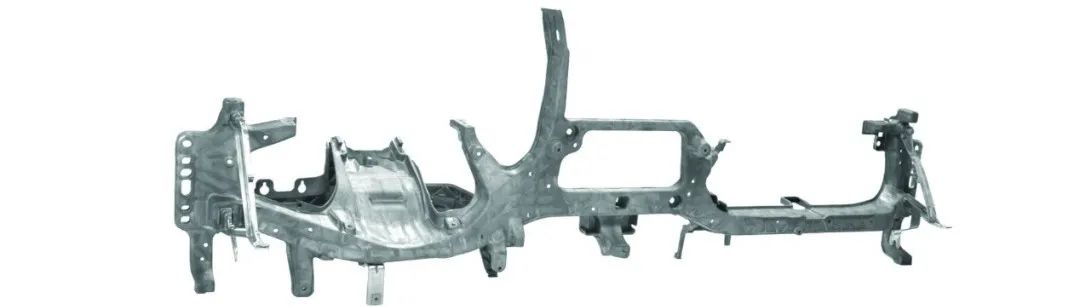 產(chǎn)品描述:高負載部件,在動態(tài)負載下也必須提供非常高的剛度,以消除振動,例如在方向盤或抬頭顯示器區(qū)域的振動。此外,該組件必須具有高度的變形能力(例如在碰撞行為中)。 設(shè)計、鑄造和成型要求:在有限的安裝空間內(nèi)滿足相應(yīng)的要求,這意味著必須靈活地設(shè)計鑄件中的橫截面。加強筋的設(shè)計要滿足應(yīng)力載荷變化,采用仿真模擬對充型和凝固行為進行持續(xù)評估。在鑄件中集成盡可能多的不同功能(附加部件的連接、支架的集成等)。 采用壓鑄方法的原因:由于安裝空間非常有限,壓鑄提供了最優(yōu)化的利用自由空間的可能性,從而使結(jié)構(gòu)更適合于應(yīng)力載荷情形。此外,鎂的使用使其有可能在低重量的情況下實現(xiàn)高應(yīng)力。