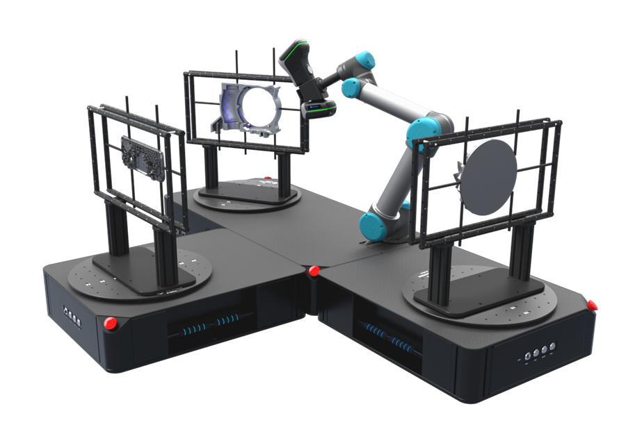 輕松部署 無限拓展 AM-DESK平臺主體僅重75kg,僅需1㎡占地面積,提供110-220V市電,5分鐘內便可輕松構建自動化檢測工位;搭配移動式集成底座,外形更緊湊輕便,可隨心布置;支持多個外接變位機,可組網,即插即用,自動切換運行路徑,進一步提升測量效率;支持不同品牌型號協作機器人,可搭載SCANTECH全系列三維掃描儀。