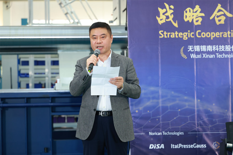 諾瑞肯集團鋁合金業務高級副總裁Marco Gandini致辭 諾瑞肯集團鋁合金業務高級副總裁Marco Gandini表示:“我們十分重視與錫南的伙伴關系,希望在合作簽約之后,通過常州諾瑞肯工廠的本地化生產更好地支持中國客戶,憑借成熟的供應鏈和制造理念為客戶更加快速地提供全球標準質量的設備。” 攜手數載 再啟新程